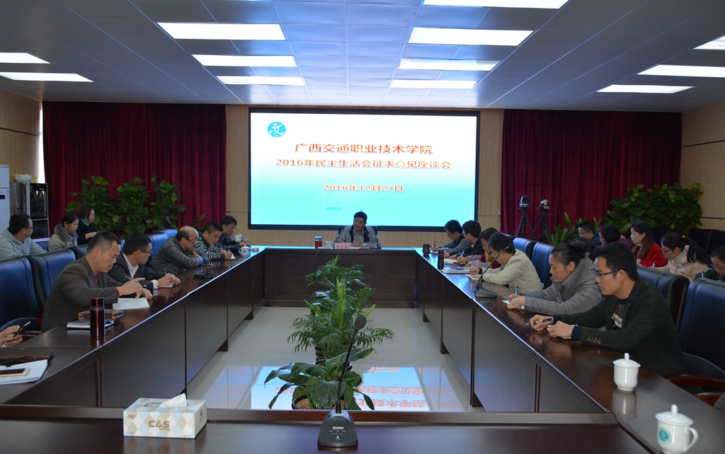 (党委工作部 讯 梁友佳/文、图)12月27日至28日,学院在四塘校区管理楼五楼会议室召开2016年民主生活会征求意见座谈会。学院中层干部,专任教师代表,行政人员代表,离退休人员、民主党派和无党派人士代表以及学生代表等人员参加座谈会,党委书记温宗胤主持会议。
