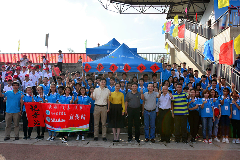 学院领导与为运动会做出积极贡献的学生社团合影留念