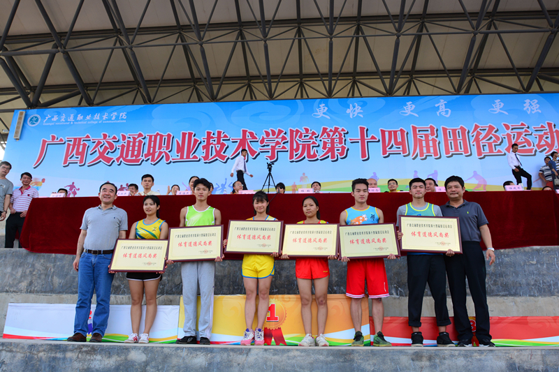 闭幕式上,本届运动会组委会总裁判长伍建军教授宣布集体项目获奖名单以及比赛成绩。在热烈、团结、和谐的运动会氛围感召下,运动健儿们取得了优异的成绩:建筑1队以总分404分夺得团体总分第一名;路桥工程系、汽车工程系、管理工程系、交通信息工程系、建筑工程系、航海工程系等6个系部获得“体育道德风尚奖”和“优秀组织奖”。同时,学院还为今年在广西第十一届学生运动会上获得优异成绩的田径、羽毛球、篮球、足球、啦啦操、武术等运动员代表颁发了“体育特别贡献奖”。在欢快的乐曲声中,到场的学院领导向获奖集体、个人颁奖。