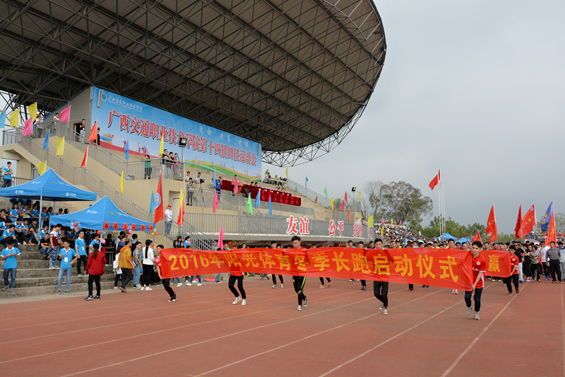 随着温宗胤书记的一声:“广西交通职业技术学院第十四届田径运动会胜利闭幕!”全场响起了雷鸣般的掌声,运动会在各班级和学生社团绕场跑旗中圆满落下帷幕。