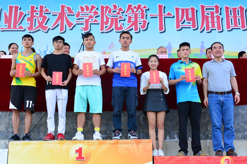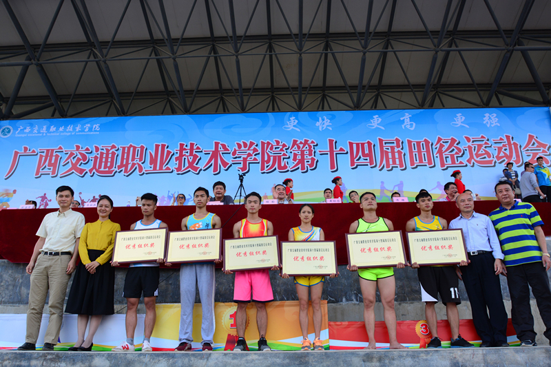 程院长为在广西第十一届学生运动会上获得优异成绩的田径、羽毛球、篮球、足球、啦啦操、武术等运动员代表颁发了“体育特别贡献奖”