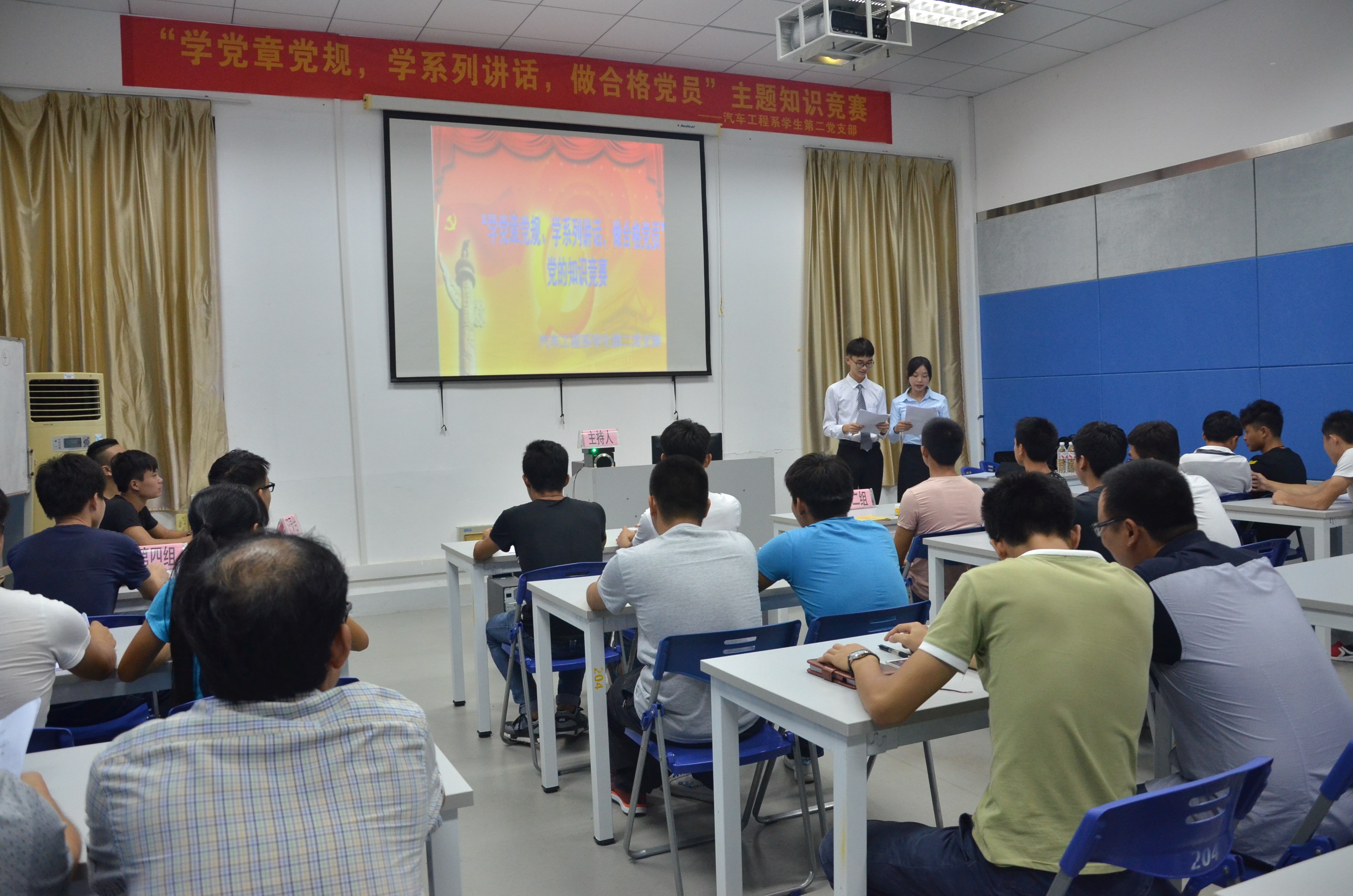 (汽车工程系 讯 吴丹,覃晓涓/文 梁志宇/图)9月18日,学院汽车工程系学生第二党支部开展“两学一做”主题知识竞赛,支部教师党员、系2015级部分入党积极分子参加了比赛,系党总支书记、统战委员到场观赛和指导。