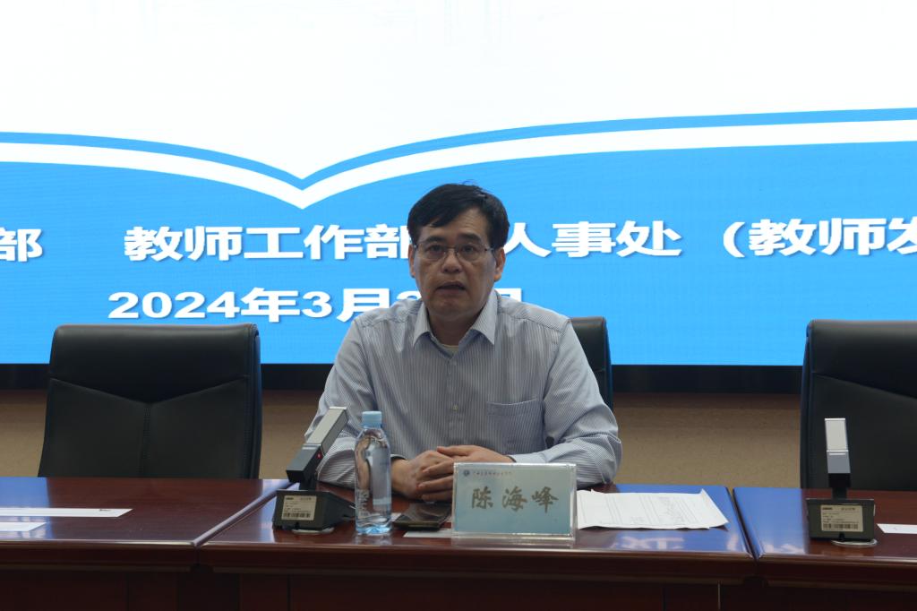 人事处(教师发展中心) 讯 黄丽莉、邓维宇/文、图 3月26日,人事处(教师发展中心)组织开展了2024年教师教学能力比赛历届优秀作品分享会。学校副校长陈海峰出席会议并进行比赛动员。