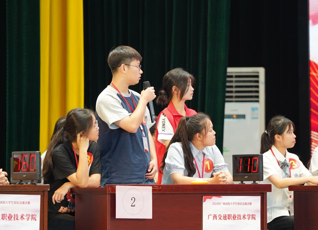 决赛按照高职高专组和本科院校组分别进行,比赛现场气氛紧张又热烈。来自全区的24所高校代表队共72名参赛选手展现了扎实的党史、国史等知识储备。决赛中,我校代表队团结协作、不畏强手,经过必答题、抢答题、风险题三个环节的激烈比拼,最终获得了高职高专组三等奖的好成绩,充分展现了我校学子团结奋进,奋勇争先的良好精神风貌。