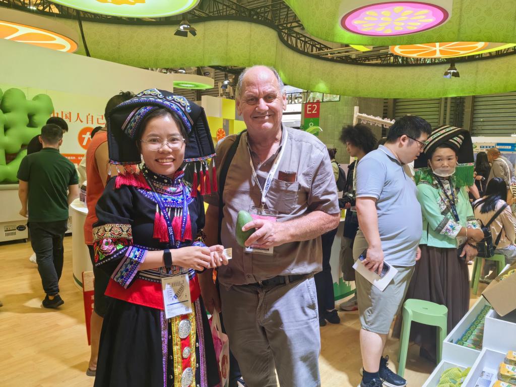 据了解,本次展会以“世界水果,中国市场”为主题,由中国食品土畜进出口商会、中国果品流通协会主办,主要汇聚全球优质水果资源,促进水果产业发展与变革。展会上,我校派驻信河村驻村第一书记韦珍妮带领合作社骨干成员一起向客商推介信河芒果,近40余家国际采购商、江浙沪等地区地水果贸易商、批发商和供应链电商及社区团购代表在品尝和了解信河芒果后,纷纷表达了进一步采购意向,洽谈了芒果销售、深加工和电商团购、冷链物流等合作事宜。在展销过程中,信河村的芒果还得到了海内外客商的点赞和好评。
