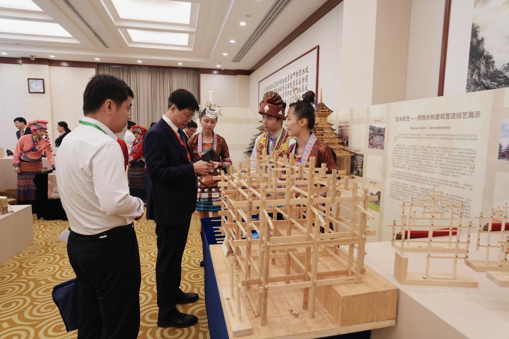 作为代表广西唯一参展的项目,我校领导高度重视,就“如何展示自身非遗特色、 更好为八桂职教添彩”进行反复统筹谋划,通过展品和图文的形式,在展示我校侗族木构建筑营造技艺非遗成果的同时,多维度展示了“党建引领、文化铸魂、科创赋能”的“交院样板”。