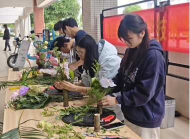活动紧扣“非遗活化”与“清正廉洁”主线,设置了六大特色项目。在“非遗匠心·‘守正’致美”文创设计展区,同学们从交通符号、传统纹样中汲取灵感,设计制作蕴含廉意的墨师文书签、U型枕等文创品;在“清风拂面·以花喻廉”花艺赛场,师生以花材为笔,抒写对“清正廉洁”的品格追求;侗族木构建筑营造技艺体验让“无规矩不成方圆”的哲理在榫卯拼接中变得真切可感;植物香囊制作区药香清逸,引导师生体悟“正气存内,邪不可干”;壮锦铜鼓挂件制作将民族纹样与廉洁寓意结合,一丝一线编织“一丝不苟、正气凛然”的华章;青花瓷干花拼贴活动则以定格的艺术形式,寓意高尚品格历久弥新。