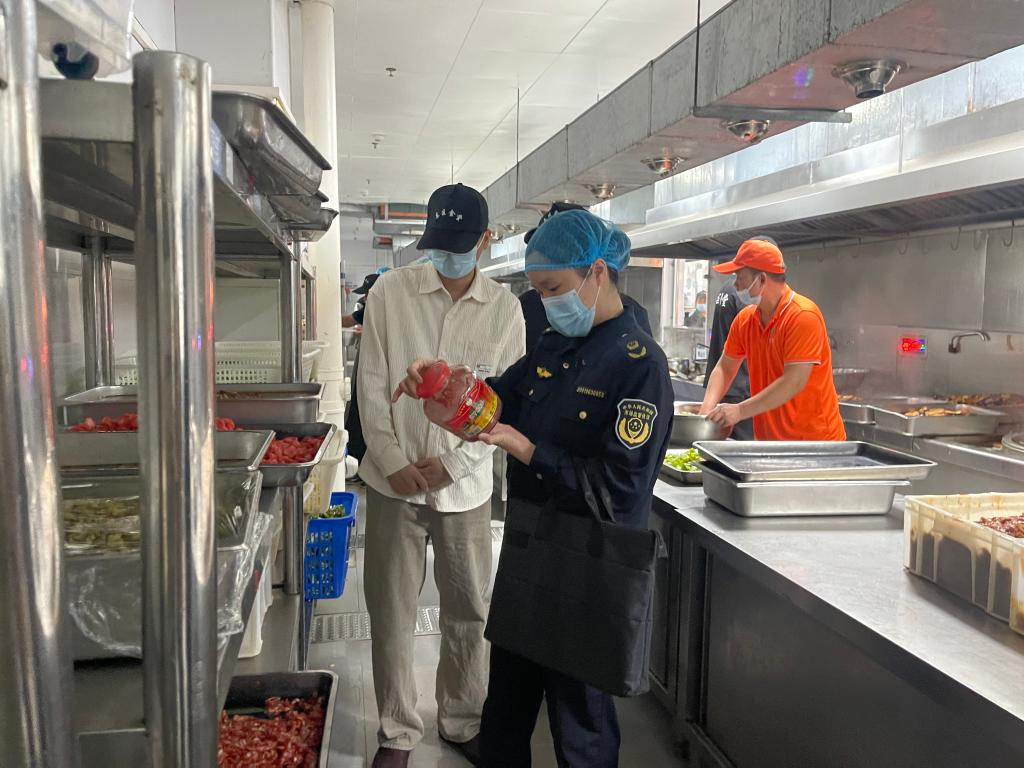 检查组深入食堂后厨操作间、食材储存仓库、备餐专用操作间、餐具清洗消毒区等核心功能区域,围绕食堂环境卫生达标情况、食材采购索证索票与进货查验制度落实、食品仓储存储条件、从业人员健康管理台账、食品安全全流程记录、食品加工操作规范、专间使用管理标准开展全链条、无死角检查。检查过程中,检查组现场查阅了食材供应商资质、进货查验记录、餐具消毒台账、食品留样登记等全套档案资料,逐项核验食品安全管理制度的落地执行情况,全面排查潜在安全风险隐患。
