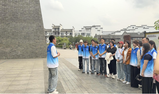 新能源专业学生代表在古城门前讲述太平府戍边历史