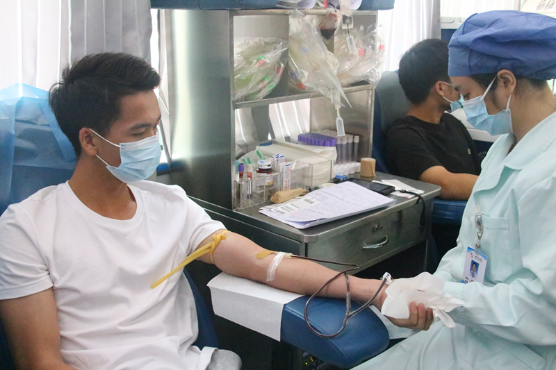 活动当天,短短的十五分钟内同学们就在献血登记点排起了长队,每一次的献血活动,大家的热情仍旧,任何困难都阻挡不了大家奉献爱心的步伐。填表、化验、抽血……所有流程都在我们工作人员的协调下井然有序地进行,为志愿者们送上一杯热奶、一杯温水,并送上几句关怀的问候,让爱心也温暖着每一位献血志愿者。一股股青春热血,一颗颗爱心满怀,使得活动现场的气氛达到了高潮,每个人的心里只有献血后的光荣和自豪。