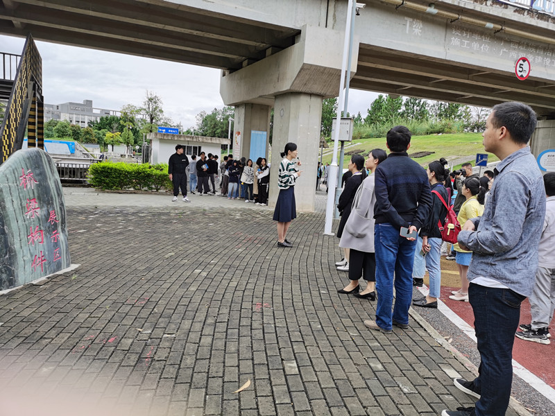 在路桥教学工场,新教师们依次参观了实训基地内的挡土墙、教学隧道、路基、涵道等展示区域。作为国内一流的教学、实训基地,教学工场理论教学、生产实际与生活用途紧密结合的建造设计给新老师们留下了深刻的印象。