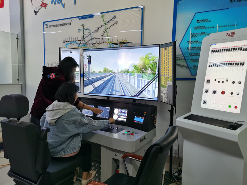 在城市轨道交通运营实训中心,新教师们亲自上场,过了一把“地铁司机瘾”,借助最新的仿真考培系统,老师们体验了地铁驾驶、地铁消防、地铁售票等教学内容。实训中心身临其境的教学体验,让新老师们大呼“神奇”。
