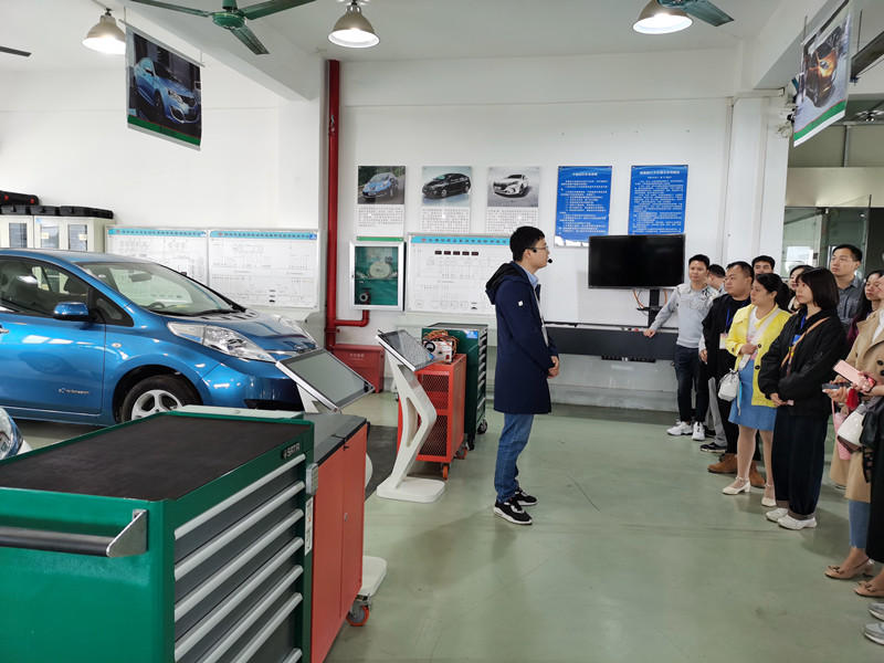 在新能源中心,依托最新的示教台架,原本复杂的汽车动力系统得以清晰地展现在老师们面前。新教师们在这里体验了新能源汽车专业的教学过程,并对汽车工程学院的发展历程与现状建立了基本的了解。