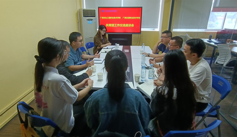 (团委 讯 盘慧凤/文 黄耀明/图)10月28日上午,广西安全工程职业技术学院团委书记刘栩男、副书记莫礼恩一行5人来我校调研交流团学工作。学校团委负责人林波及部分团干、学生会主要工作人员代表参加本次交流活动。
