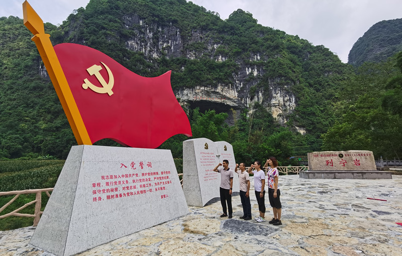 (体育教学部直属党支部 讯)近日,体育教学部直属党支部全体党员到东兰县革命老区开展“学史强信念,青春心向党”主题党日活动,进一步教育引导党员干部重温革命历史,重温入党誓词,传承红色精神,凝聚奋进力量。