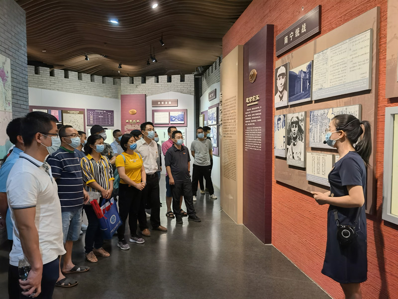6月5日下午,党员们走进龙州起义纪念馆、红八军军部旧址和法国驻龙州领事馆旧址,追寻红色足迹,重温革命历史,感悟初心使命。在龙州起义纪念馆,全体党员面向党旗,重温入党誓词,不忘入党初心。在讲解员的介绍下,大家参观了龙州起义时期和中国红军第八军珍贵的革命文物和历史资料,聆听英烈们参加龙州起义血洒左江的革命故事,缅怀革命先烈的丰功伟绩。资产管理中心党支部组织委员林春英同志在“龙州血战”专题中驻足,“铁桥阻断战”的悲壮场景让她动容,久久停住脚步,她眼里饱含着泪水说道:“我们今天来之不易的生活,正是烈士们用献血换来的,我要时刻谨记烈士们艰苦奋战、不怕牺牲、不畏艰难、勇往直前的精神,内化于心、外化于行,努力工作,为社会主义建设贡献自己微薄的力量。”