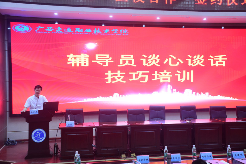 签约仪式后,南宁市社会福利医院伍业光教授为我校学生工作队伍作了辅导员谈心谈话技巧专题培训,重点阐述了辅导员运用心理学谈话技巧与学生交流沟通的技术,突出强调了共情在辅导员工作中的重要性。