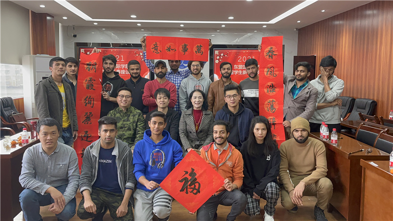 (东盟国际学院 讯 黄刚 陈子秋/文 钟佳利/图)春节前夕,东盟国际学院开展了春节特别班会、新春座谈会、学书法、包饺子等一系列迎新春活动,让在校留学生感受到了美好的祝愿和节日的温暖。