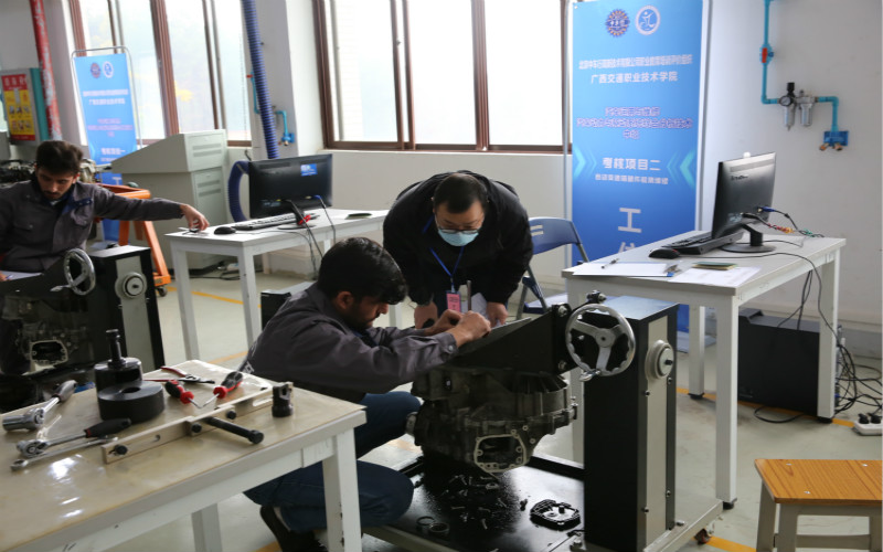 为了更好地开展首次国际留学生的试考评工作,我校汽车工程学院高度重视,组建骨干师资队伍制定了详细培训计划,严格按照考评标准对巴基斯坦学生进行了为期11天的专项培训。