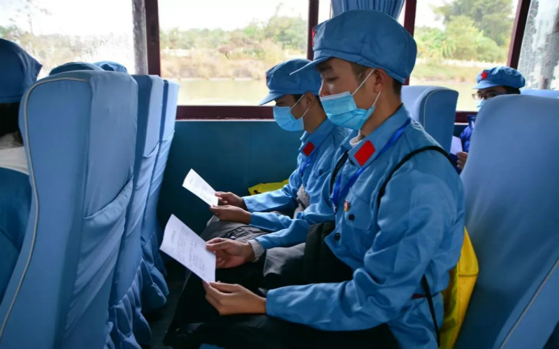 12月19日,“青马”学员赴田东县那恒村革命史馆、红军船(田东县新时代讲习所)、红军会师广场、经正书院(右江苏维埃政府旧址)开展学习教育培训活动。田东县委党校李孟群老师带领学员们沿着当年邓小平同志“挺进右江”的足迹,从那恒码头乘坐“红军号”前往二牙码头。在行船途中,学员们认真聆听李老师讲解关于邓小平同志“挺进右江”