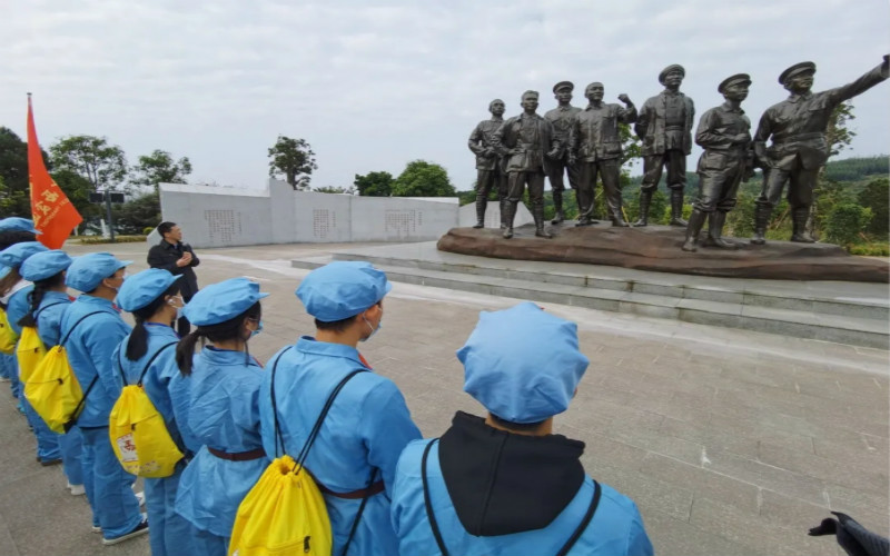 、邓小平同志和张云逸同志在平马胜利会师的历史背景,并观看《百色起义》视频影像片段,集体学唱红色歌曲《共产党领导真正确》。