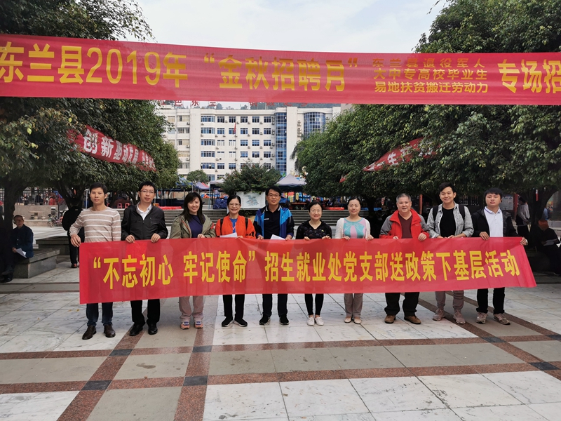 (招生就业处 讯 李璇/文、图)为扎实开展“不忘初心、牢记使命”主题教育,深化革命传统和理想信念教育,近日,招生就业处党支部全体人员赴东兰开展“不忘初心、牢记使命”主题党日活动。