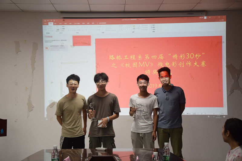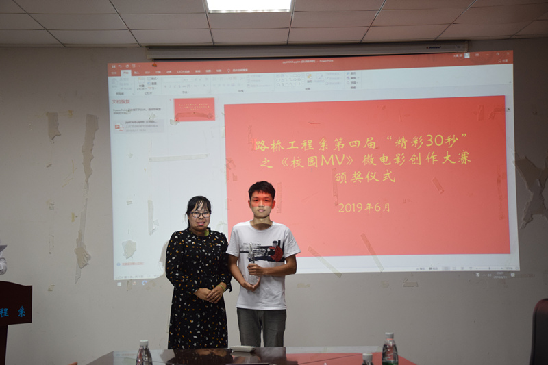 此次比赛围绕“校园MV”主题展开,共征集作品20余个。作品有的激励同学们勇于追逐自己的梦想,有的诉说大学校园里的纯真,有的讲述青涩的唯美爱情,每一个作品都给评委和观众留下了深刻的印象。经过网上投票、教师投票以及学生投票等多种方式的比拼,共有五个作品入围决赛。最终,道桥18-7班获得最佳影片奖,轨道学徒2018班获得最佳导演奖、道桥18-6班获得最佳男主角奖、铁道18-2班获得最佳创意奖、公造18-3班获得最佳人气奖。