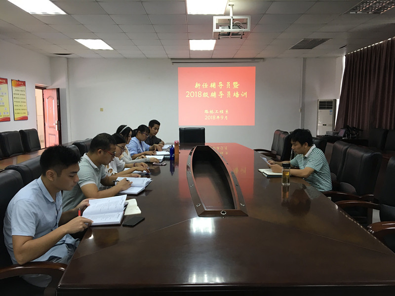 路桥工程系党总支书记韦秋平指出,辅导员要高度重视开学期间各项学生工作,做好学生返校统计、思想教育、学生资助、安全稳定、宿舍调整、技能和双创大赛、共青团等工作;扎实做好安全稳定工作,细致开展安全隐患排查,认真落实各项防范措施,确保新学期校园的安全稳定和学生工作的有序开展;要认真思考、谋划秋季期学生工作,着力推进“三全”育人工作机制建设,打造学生工作特色育人品牌,全面提升学生教育、管理和服务质量。会上,2018级带班辅导员进行了专项培训。