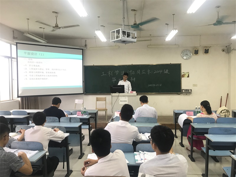 学院高度重视本次论文答辩,精心组织,统筹安排毕业答辩工作。桂林理工大学土木与建筑工程学院负责人、道桥教研室主任、教师以及我院路桥工程系教师共同组成答辩小组。在答辩过程中,按照现场陈述、现场提问和现场解答的程序,每名同学在规定时间内将论文(设计)的过程、成果进行了详尽的集中展示。答辩老师就学生成果进行现场提问并提出了改进意见。