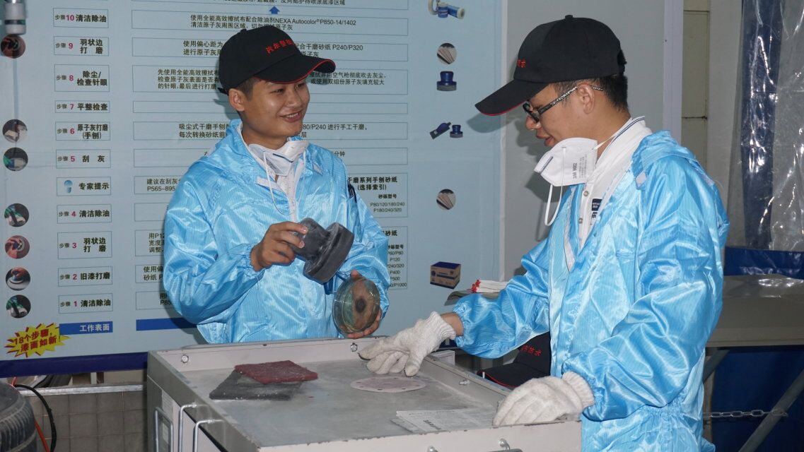 汽车涂装技术培训主要是结合中职学校汽车专业课程建设及中职涂装比赛需求开展的,内容包括安全知识、损伤评估、面漆损伤前处理、面漆喷涂、面漆调色、常见涂装缺陷防治及处理等方面。培训由汽车工程系资深专业教师承担。培训形式多样,有指导教师的专业讲解和操作演示,也有来自学员的动手操作。在指导教师讲解、操作后,学员和指导教师针对每一个培训的内容进行研讨,探讨在今后的的教学活动中如何更好地组织教学,实现中高职教学的无缝对接。