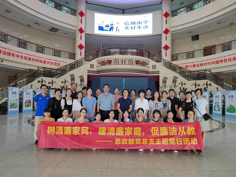 (思政部 讯 祝显慧、朱青穗/文、图)为深入学习贯彻习近平总书记关于注重家庭家教家风建设的重要论述,落实“清廉交院”建设要求,以纯正家风涵养清朗党风,助推廉洁从教。日前,思政部党总支组织全体党员教师前往广西民族博物馆参观“家和万事兴——广西家庭家教家风主题展”,开展主题党日活动。