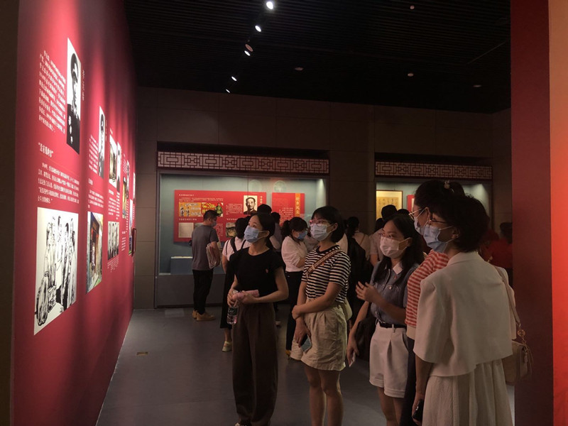 党员教师们认真参观学习