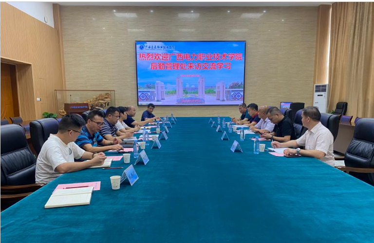 5月25日下午,广西电力职业技术学院后勤管理处黄红春副处长一行5人到我校交流调研,学校后勤中心副主任李锦、白克云、资产中心副主任林长峰及相关工作人员参加了此次调研座谈会。