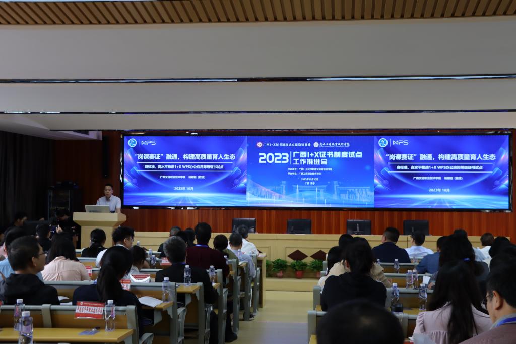 推进会上,杨顺韬书记以《“岗课赛证”融通,构建高质量育人生态——高标准、高水平推进1+X WPS办公应用等级证书试点》为主题,围绕1+X证书制度试点总体情况、“WPS办公应用”等级证书遴选、“岗课赛证”融通实施证书试点工作、成效及创新点等方面向全区各职业本科、高职院校和五星级中等职业学校的代表分享了我校在1+x证书制度试点工作推进中好的经验和做法。
