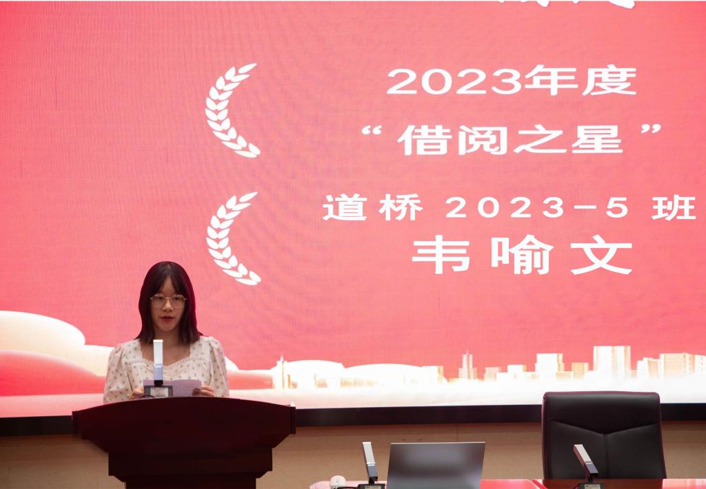 2024年“读书文化节”启动仪式现场公布了2023年度“借阅之星”名单。图书馆馆长韦端为借阅之星代表颁发荣誉证书及奖品。借阅之星代表进行了现场发言,分享阅读心得,讲述读书感悟,分享美文著作,给聆听的师生带来了一场心灵盛宴。