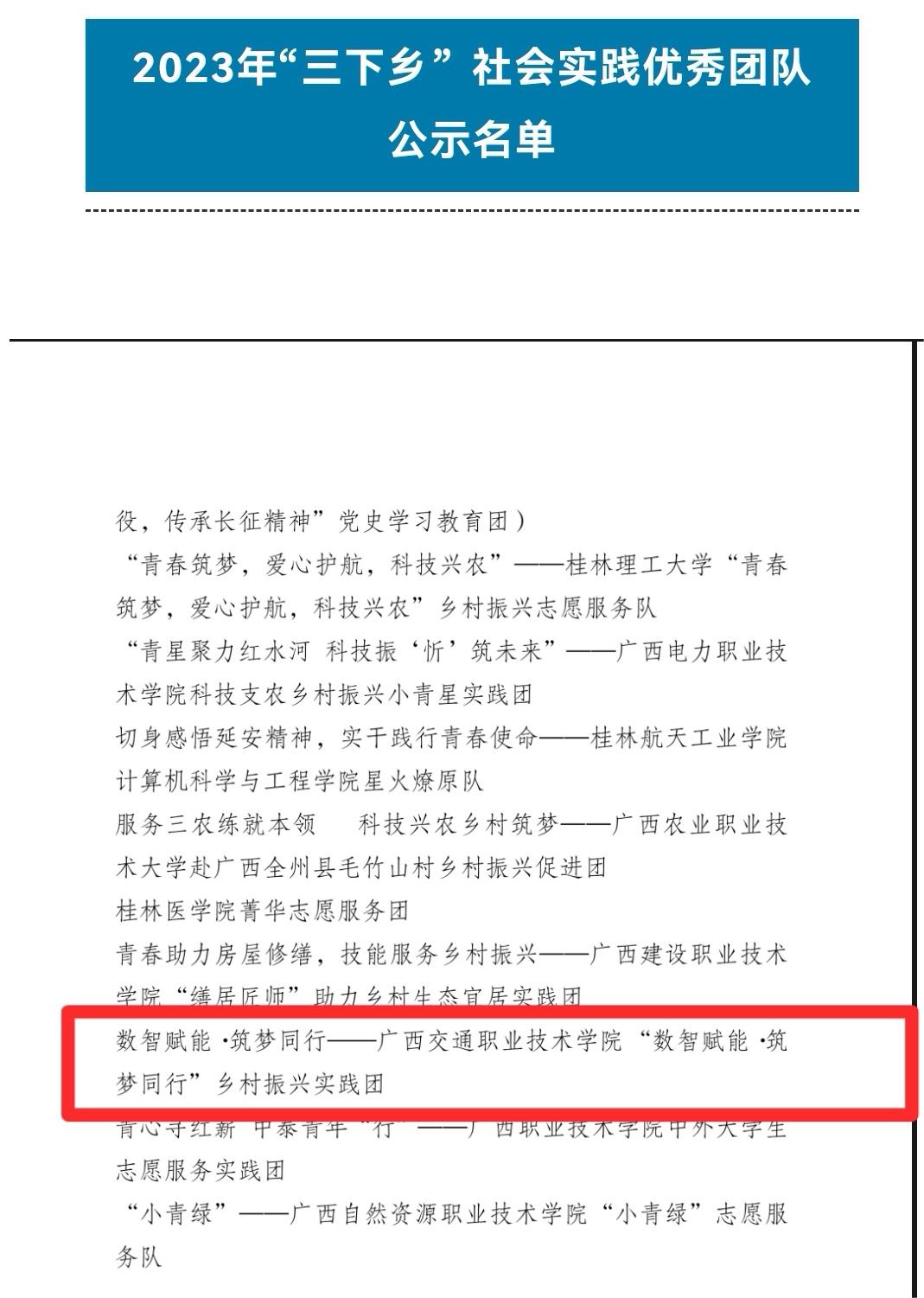 (校团委 讯 )近日,学校在2023年全国和广西大中专学生志愿者暑期文化科技卫生“三下乡”社会实践活动评奖评优中再获佳绩。