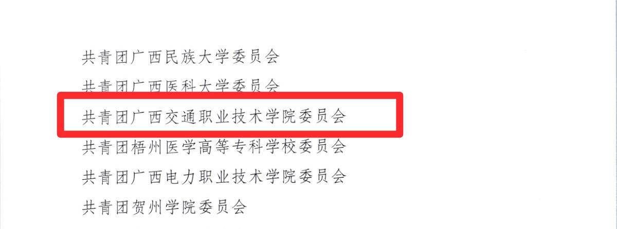 学校团委被共青团广西区委评选为优秀单位