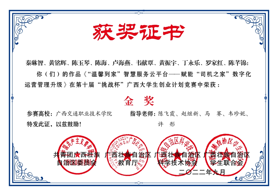 同时,依托协会搭建学生创新创业能力培养平台。近五年,学生在大学生互联网+创新创业大赛中累积获区级银奖3项、铜奖9项,并取得软著3项;在2022年第十届“挑战杯”广西大学生创业计划竞赛中获金奖1项;积极申报并获批学校创业基地入驻项目,以学生创业活动的开展反哺竞赛成果积累。