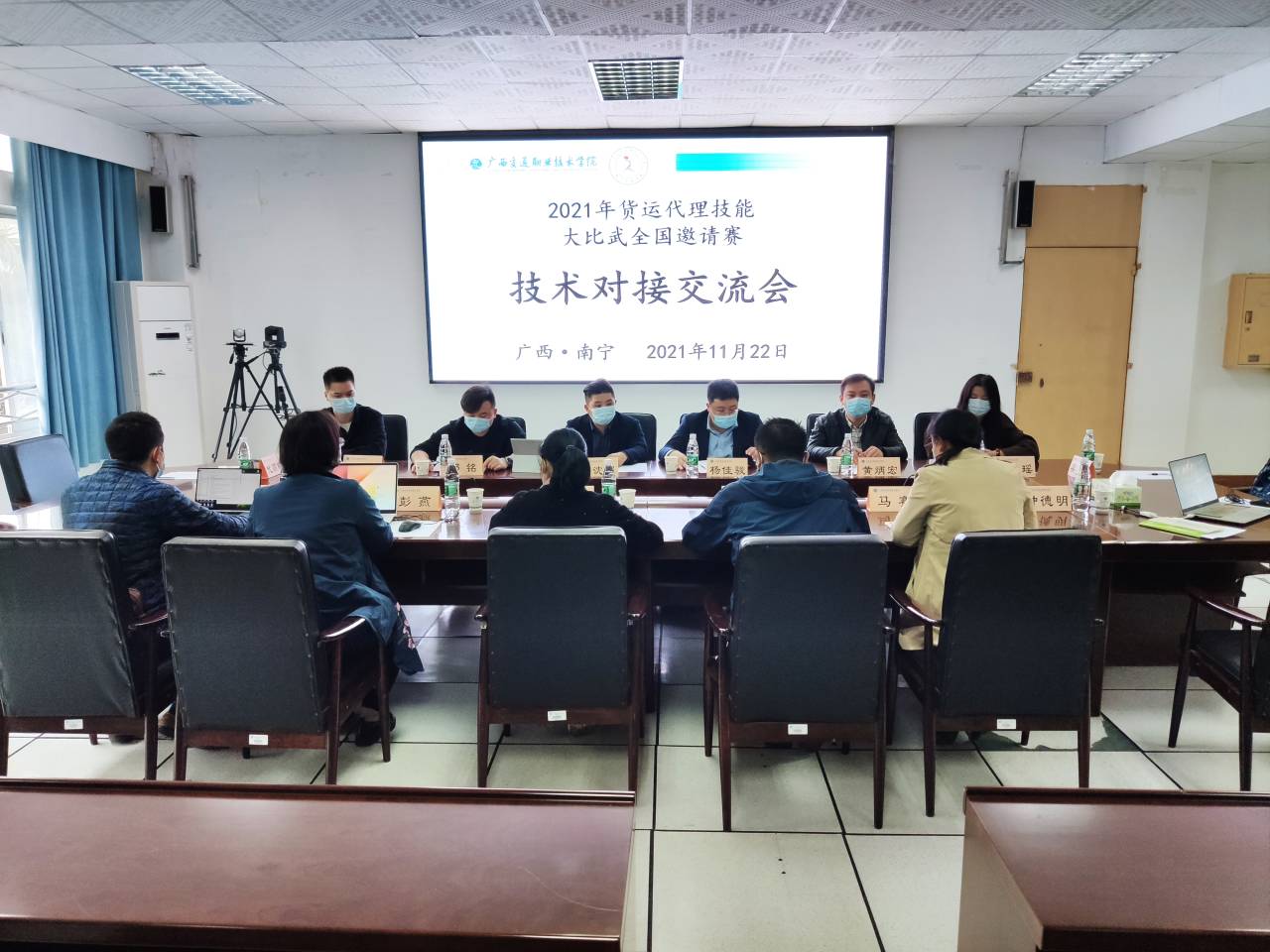 (经济管理学院讯图/钟德明 文/马赛)11月22日上午,“2021年货运代理技能大比武全国邀请赛”技术对接交流会在园湖校区图书馆四楼召开。第四十五、四十六届世界技能大赛货运代理赛项国家队专家组专家杨佳骏教授、深圳市中诺思科技股份有限公司智慧蓝学院代丽梅院长、广西南宁中诺思信息科技有限责任公司黄炳宏总经理等一行7人,与经济管理学院院长杨军、党总支部副书记蒋波、港口与航运管理专业教师等人员进行座谈。