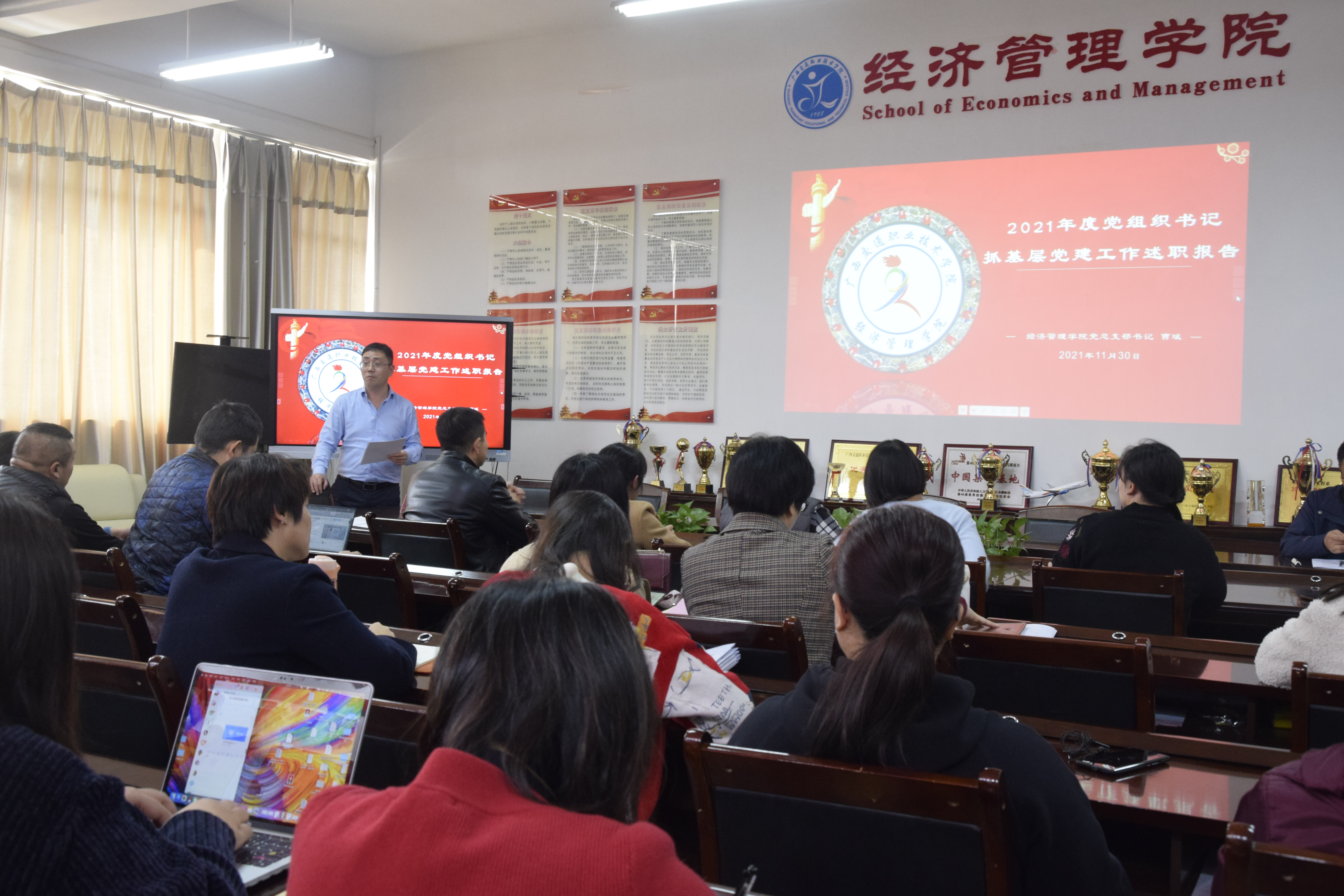 随后,曹斌书记从我院党总支工作思路讲起,从加强党的全面领导;到深入细致抓思想建设,筑牢学院发展的思想根基;再到统筹协调抓组织建设,党支部战斗堡垒作用进一步凸显等方面汇报了开展党建工作的主要做法及成效,对于存在的问题,有针对性地提出下一步将继续丰富经管”自强不息、不怕输、不服输“的精神内核,深入实施同心圆工程,建设同心文化,推进校院体制改革,增强办学主动性,打造一支让党委放心的党政班子及教师队伍。