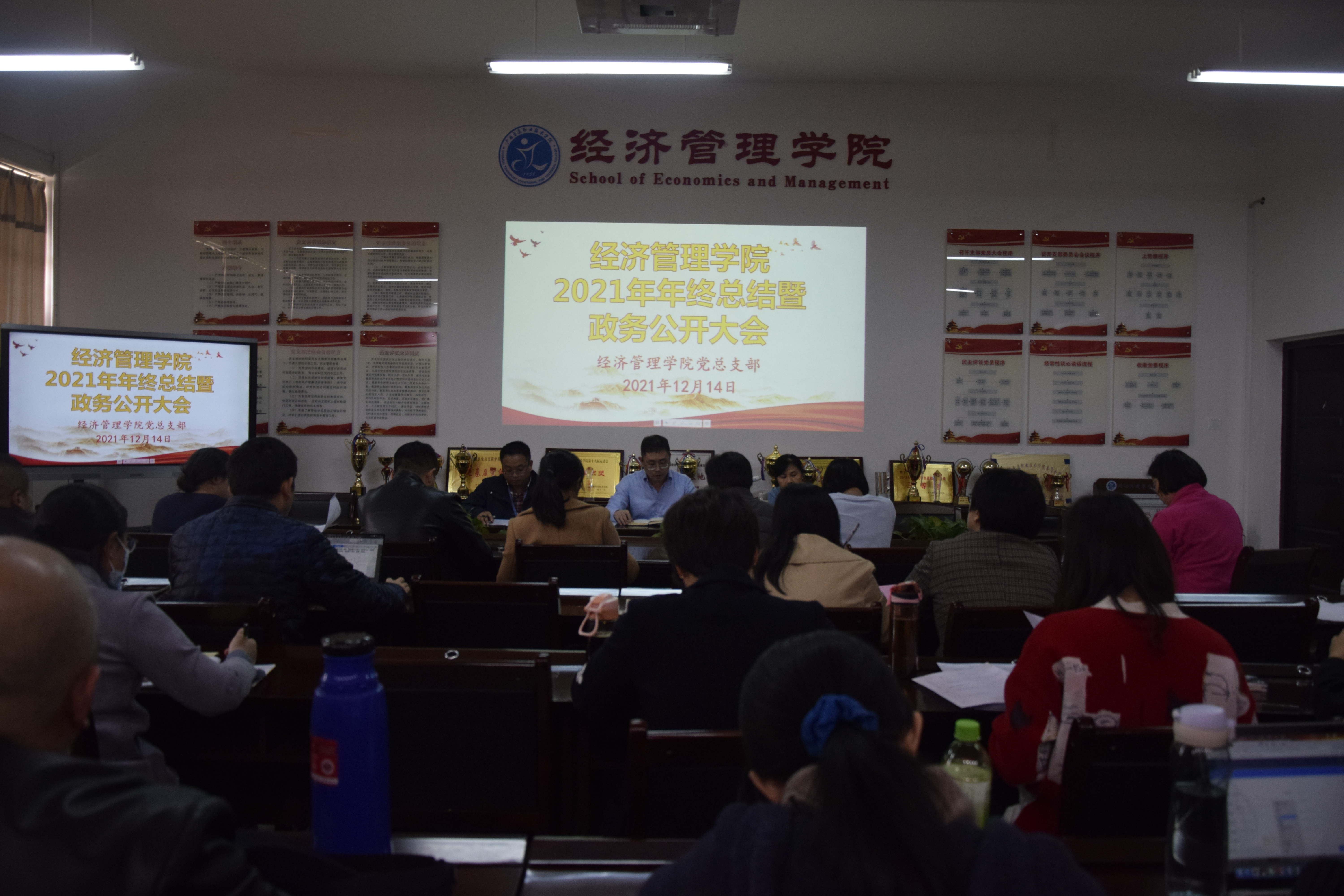 (经济管理学院讯图文/韦珍妮)12月14日,我院在管理楼316会议室召开2021年终总结暨政务公开大会,会议由学院党总支部书记曹斌主持,学院院长杨军、党总支部副书记蒋波及全体教职工参与本次大会。