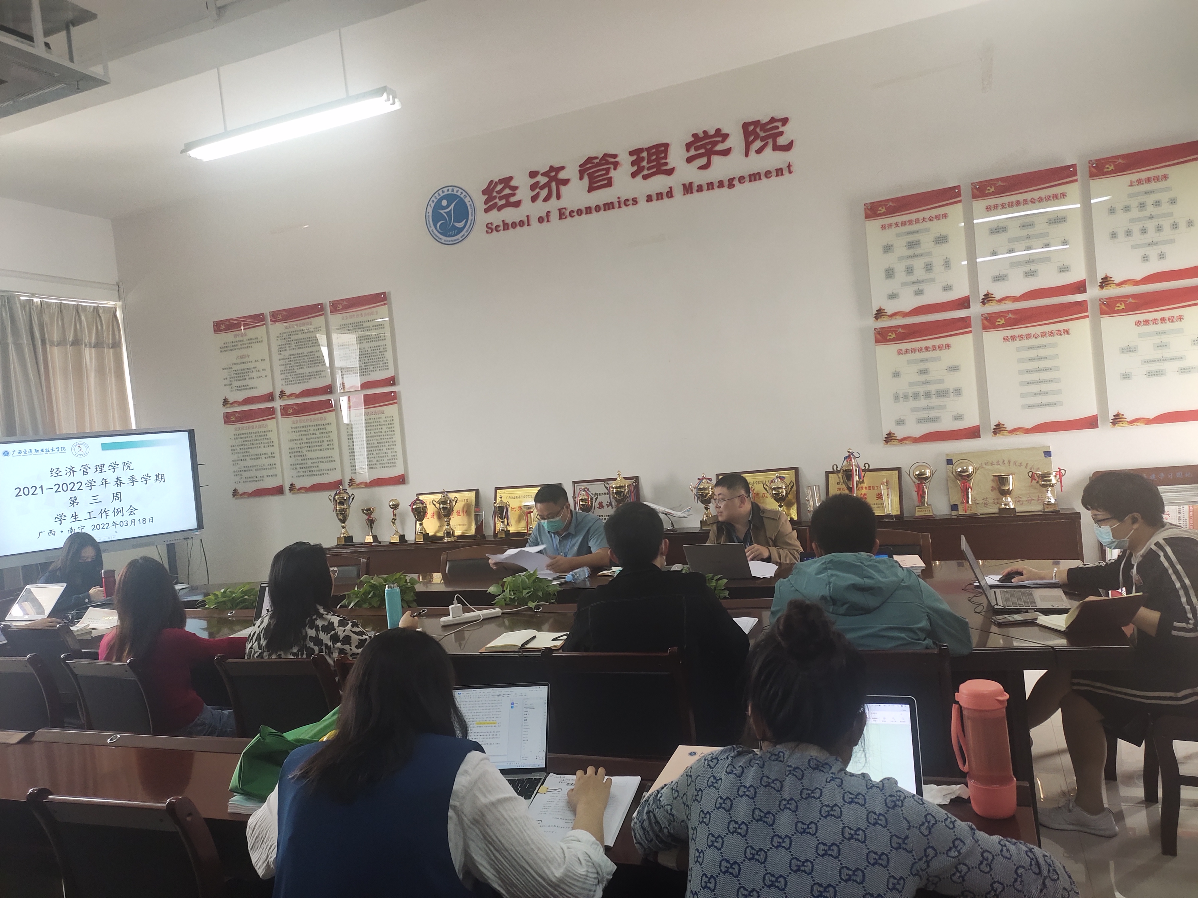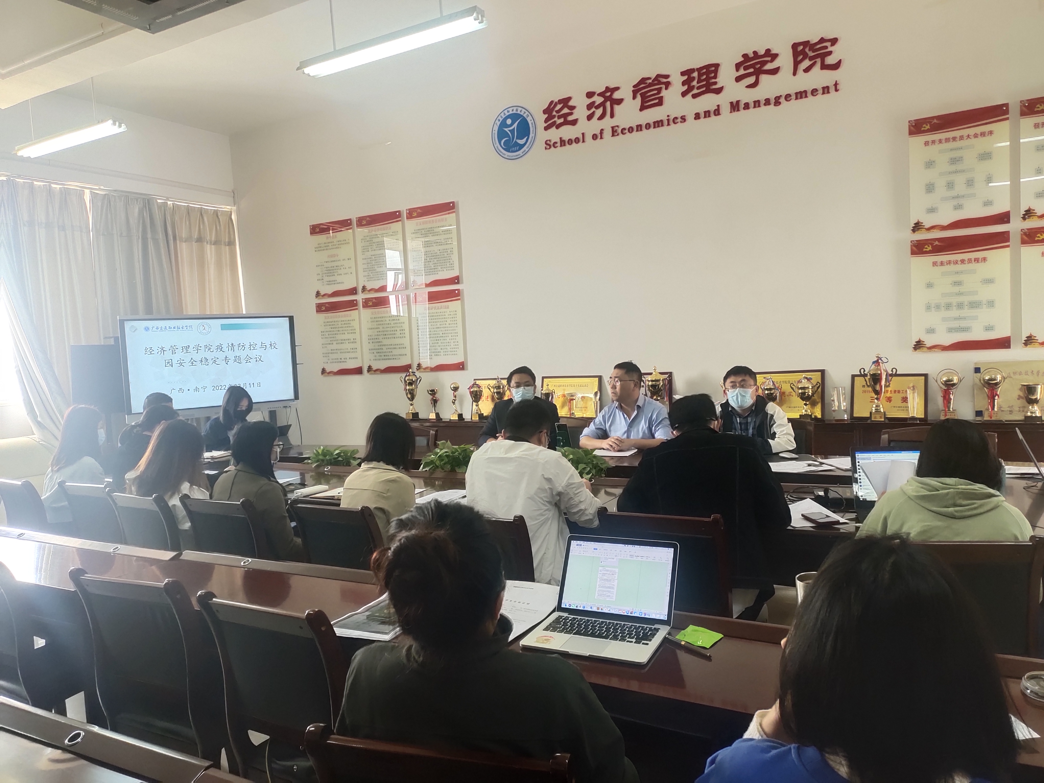学生返校伊始,学院在管理楼316会议室召开经济管理学院疫情防控与校园安全稳定专题会议,全体辅导员、班主任参加本次会议。会上,学院党总支部书记曹斌传达了上级疫情防控会议精神,特别对本轮疫情防控工作特点、存在问题和相关工作要求做了重点传达,同时要求全体老师提高认识,严防松懈,警惕侥幸心理,高度重视疫情防控工作,将安全管理、线上教学和学生心理关爱工作做实做细,确保师生安全稳定。学院党总支部副书记蒋波结合学院实际情况对疫情防控工作进行了具体部署。