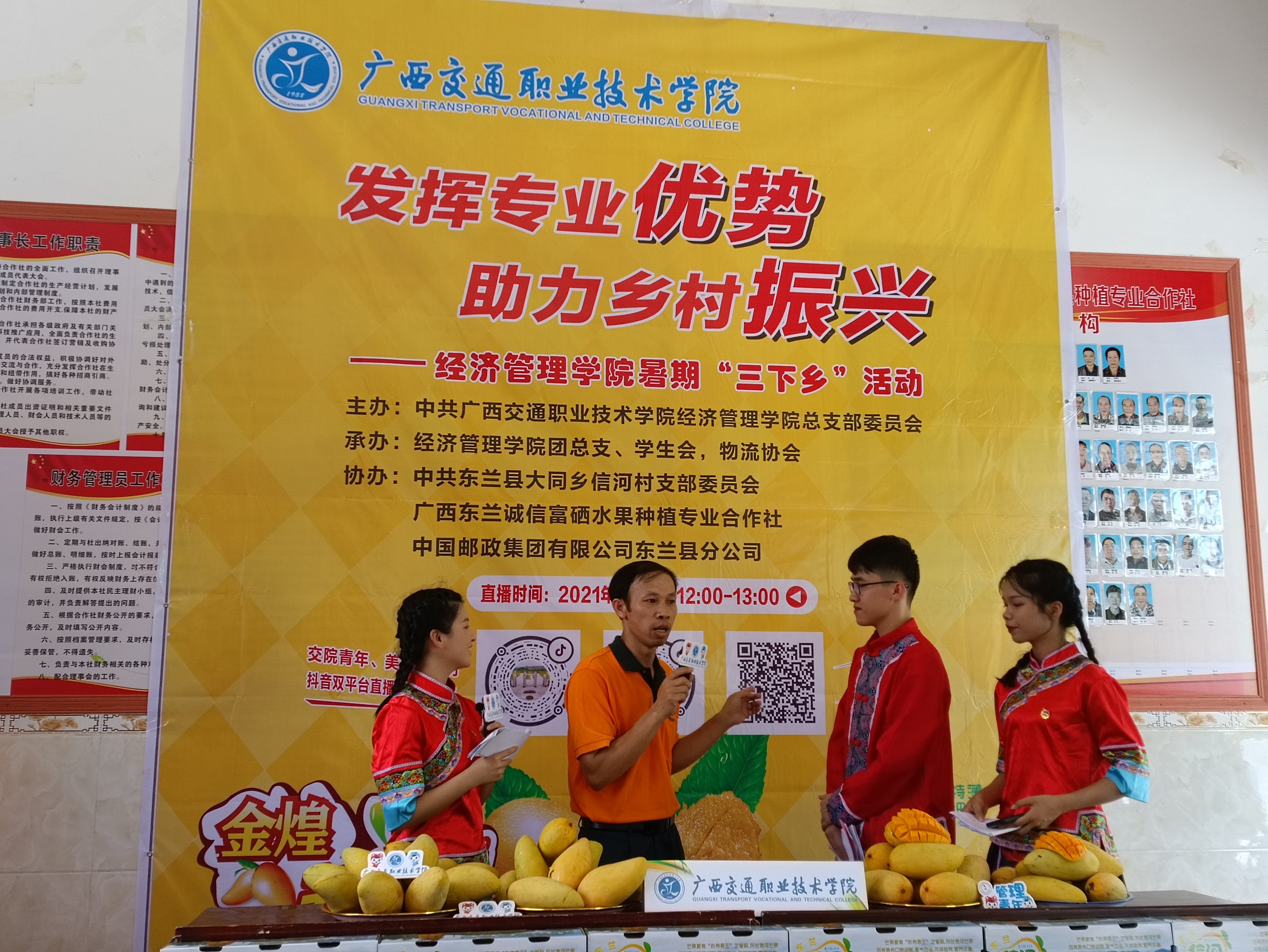 据悉,本次暑期“三下乡”社会实践活动共由4支队伍组成,除了直播带货、对乡村振兴人才回流因素、乡村物流发展情况调研、推普和共讲红色故事外,还有与村民共乐的文艺汇演活动。直播活动除了拓宽信河村芒果的销售渠道外,还旨在让村民更近一步了解直播带货,教授村民们掌握直播技能,在村民心中播下电商直播的种子。据驻村第一书记梁玥悦介绍,下个月等桂七芒果成熟后,将会组织村民开展直播销售活动。