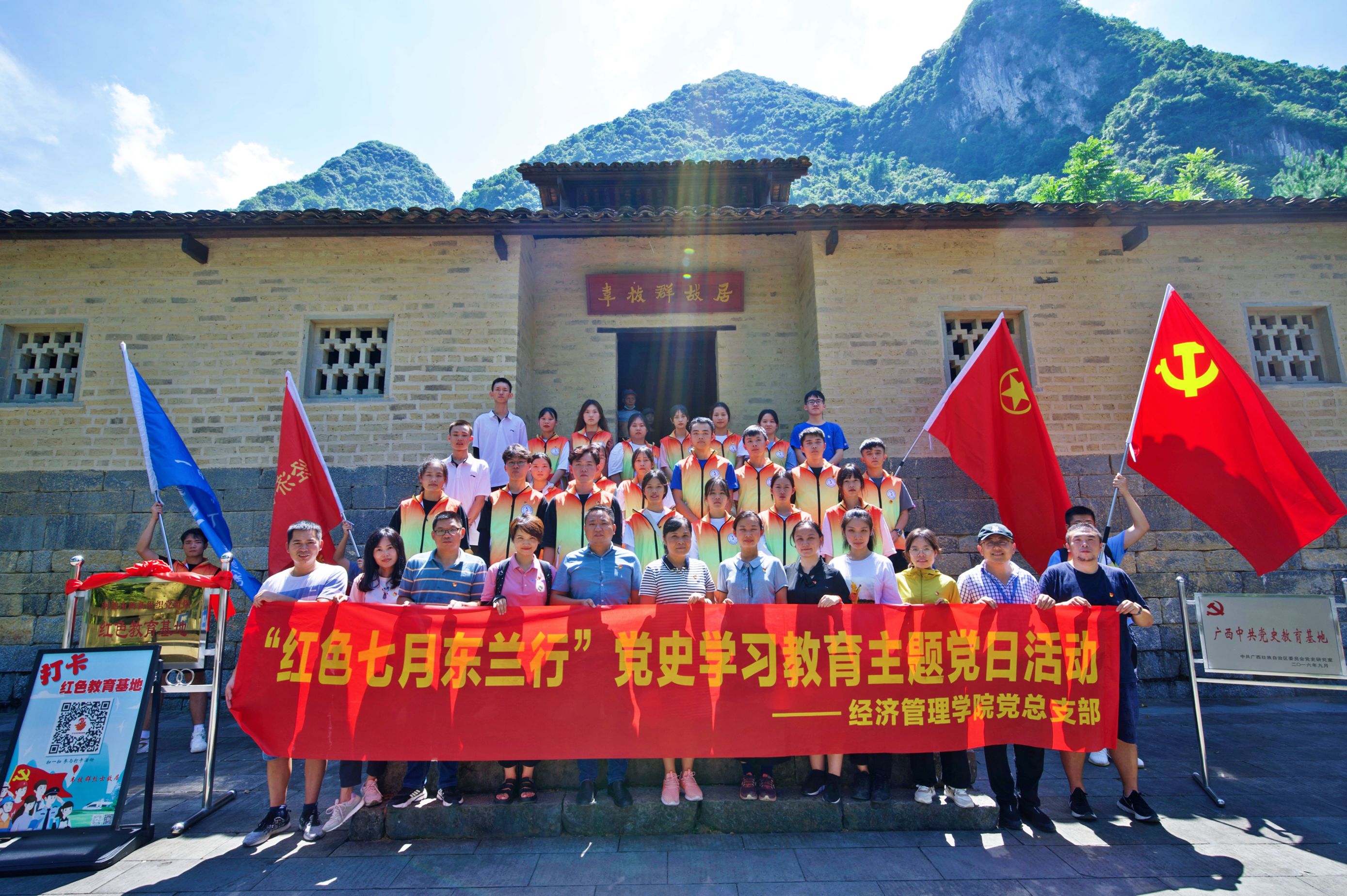 欲先善其事必先利其器,实践团队第一站来到了位于东兰县武篆镇东里村东里屯的韦拔群故居。瞻仰先烈遗迹,深刻感悟“拔群精神”。参观学习现场,学院杨军院长为师生们主讲了一堂精彩的微党课。她充分结合韦拔群故居的革命遗迹,生动形象地讲述了韦拔群的革命事迹,深刻诠释了他用生命铸就的“对党忠诚、一心为民、追求真理、百折不挠、顾全大局、无私奉献”的拔群精神。杨军院长动人的讲解引得师生们全神贯注地聆听。通过这堂微党课,师生们更进一步了解了东兰这片红色热土,更深刻理解了“拔群精神”和中国共产党的伟大。通过学习,使师生们思想上受到了极大的精神洗礼,更加坚定了助力乡村振兴,为老区人民谋幸福的信念。