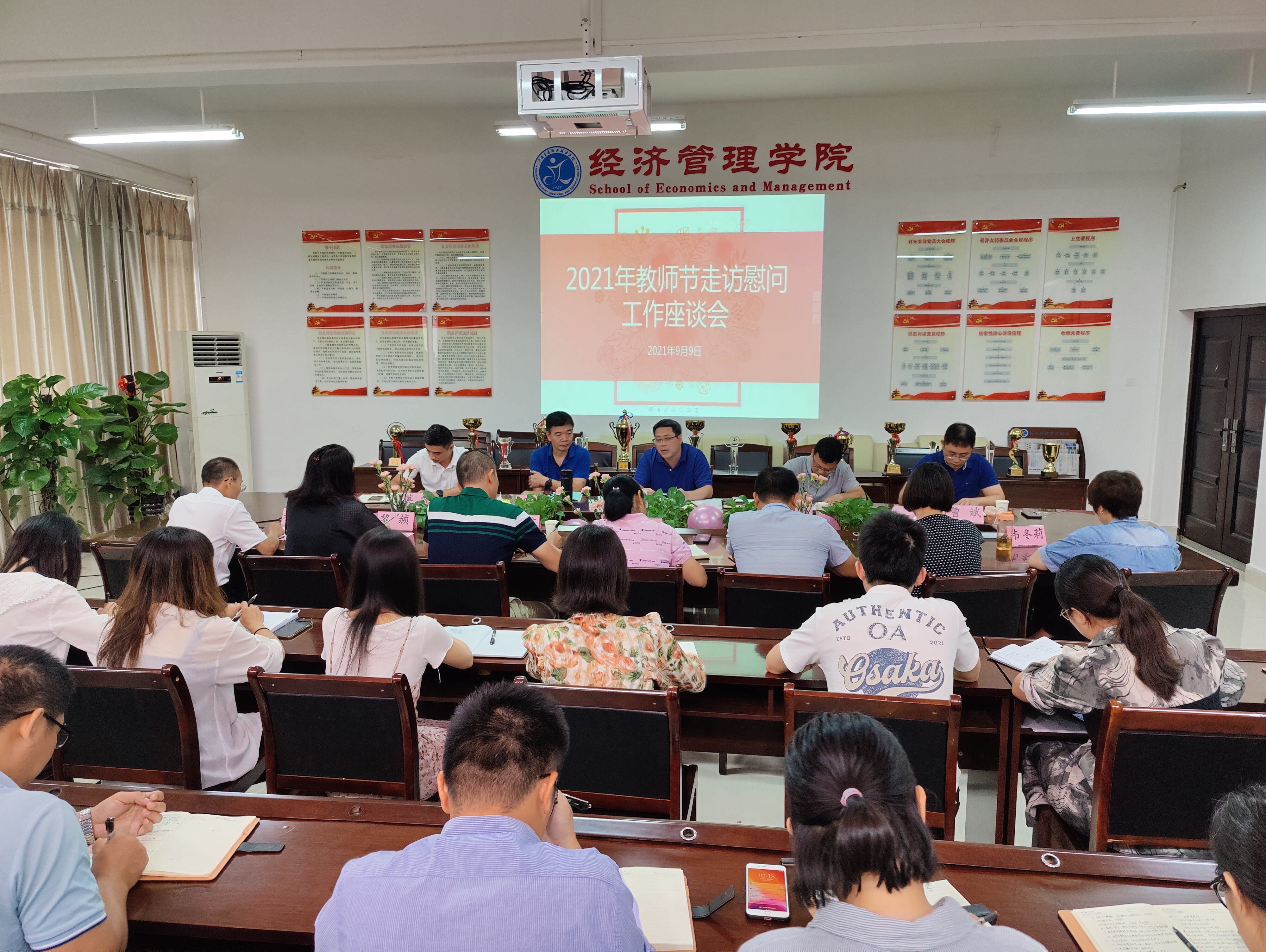 (经济管理学院 讯 甘青梅/文 韦珍妮/图)9月9日上午,在第37个教师节来临之际,陈正振副校长看望慰问体育教学部、经济管理学院教师代表,并在昆仑校区管理楼316召开了教师节走访慰问工作座谈会。体育教学部、经济管理学院领导班子全体及教师代表共20余人参会。
