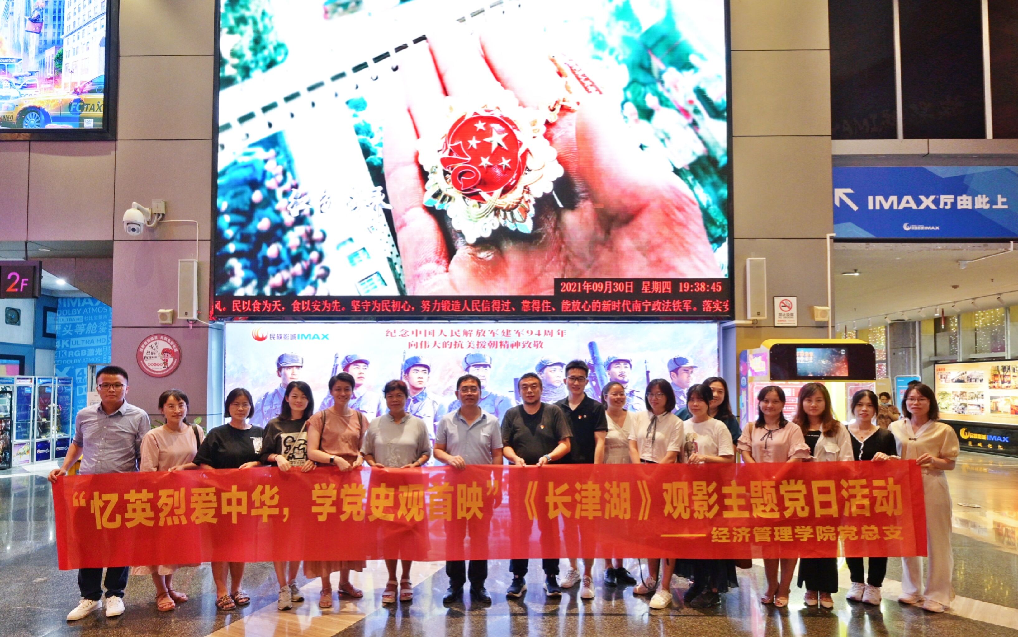 (经济管理学院 讯 田晓/文 袁斌/图)为了增强党员的爱国主义情怀,弘扬革命先烈的英勇无畏精神,发挥党组织的战斗堡垒作用,提高党员的责任感,重温“抗美援朝”的英雄事迹,真正认识到伟大祖国的强大和幸福生活来之不易。经济管理学院党总支部于9月30日晚在民族影城开展“ 忆英烈爱中华,学党史观首映”主题党日活动。活动由教工第一党支部承办,共有20名党员参加了本次活动。
