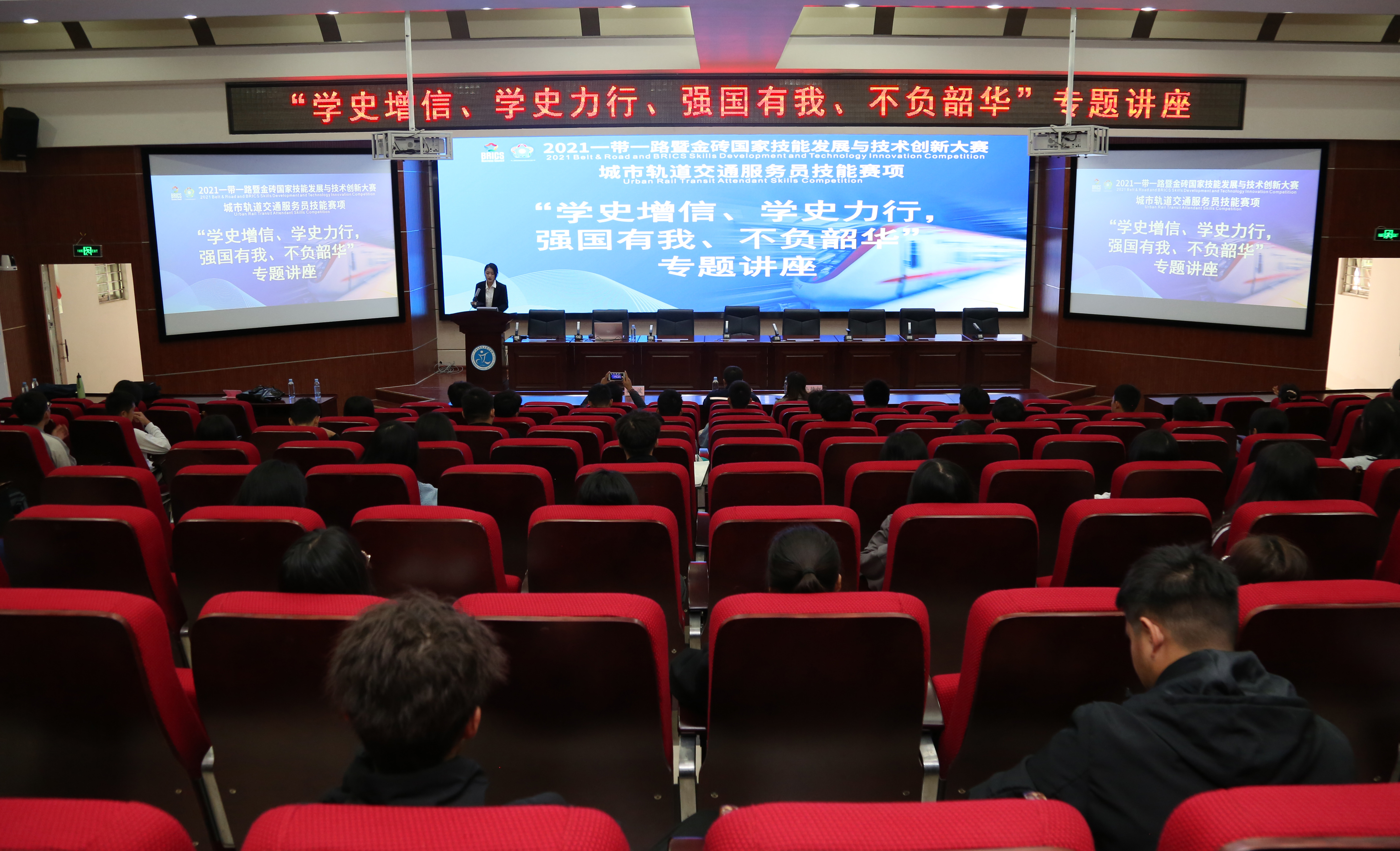 据悉,本次主题讲座系2021一带一路暨金砖国家技能发展与技术创新大赛城市轨道交通服务员技能赛项广西赛区同期举办的城市轨道交通服务科技文化周系列活动之一,旨在通过广西工匠、全国交通建设工匠的先进事迹,将工匠精神宣贯到同学中去,让同学们在学习百年党史的同时,更好地感悟工匠精神。
