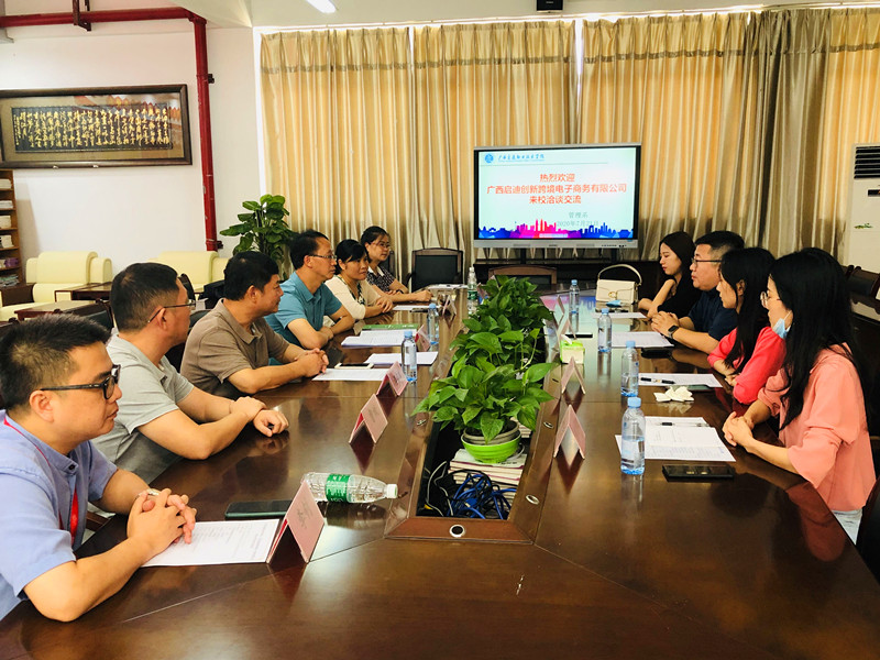 7月21日,由管理系组织的校企共建产业学院洽谈会在昆仑校区管理楼316会议室举行,广西启迪创新跨境电子商务有限公司(以下简称“启迪创新跨境公司”)总经理丁国勋、总经理助理招汇、人才孵化中心主任诸葛榕荷、项目部主管韩方田一行四人参加洽谈会,学院党委书记温宗胤、院长李文勇出席会议,管理系领导班子、相关教研室主任等骨干教师参加了会议。