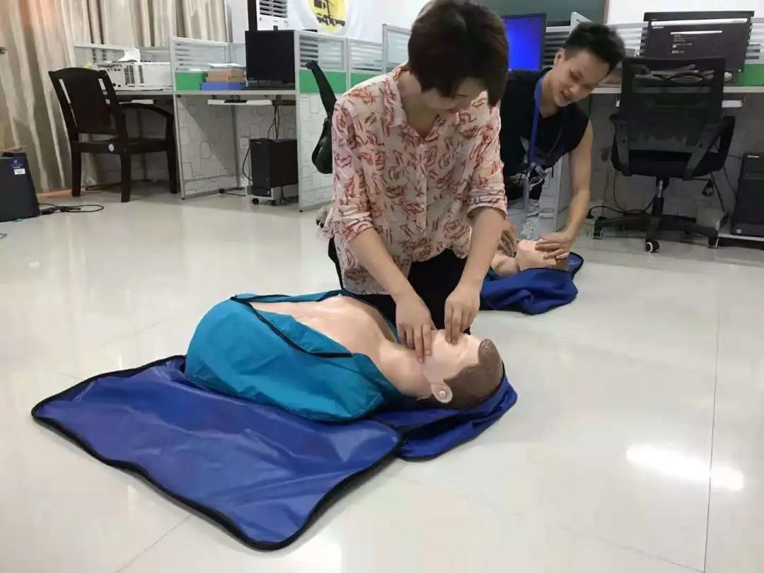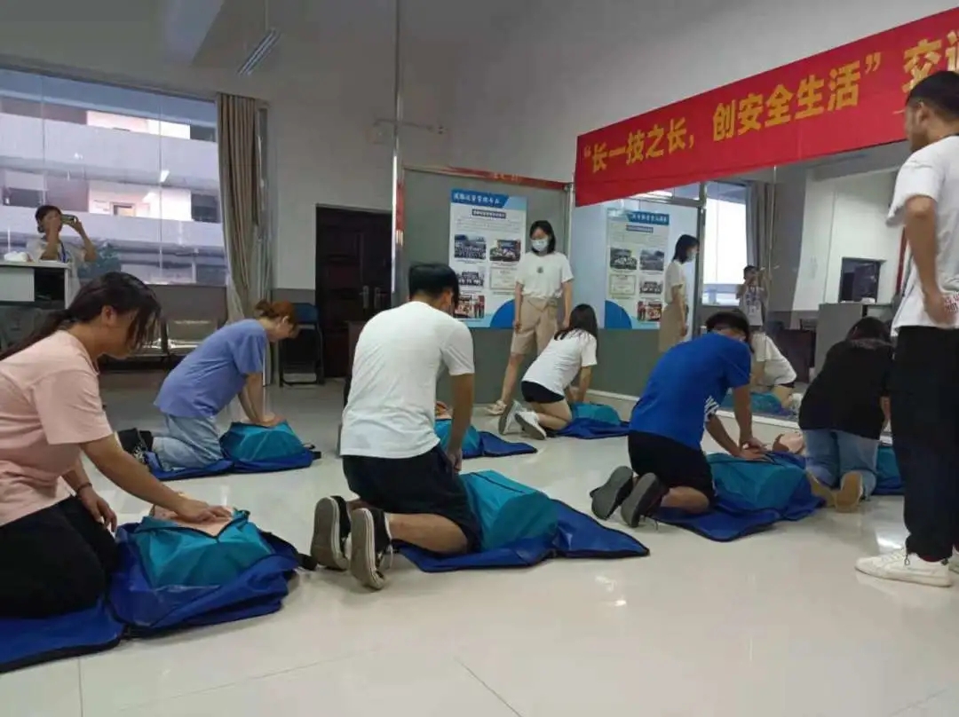 通过观看心肺复苏急救操作步骤视频,来让同学们掌握相关的急救措施以及急救的操作步骤。在接受了系统讲解后,参训人员通过现场的实操演练,在模拟人身上体验了心肺复苏的操作手法,从心肺按压到人工呼吸,每一个动作、每一个步骤都经过了导师们手把手的指导。
