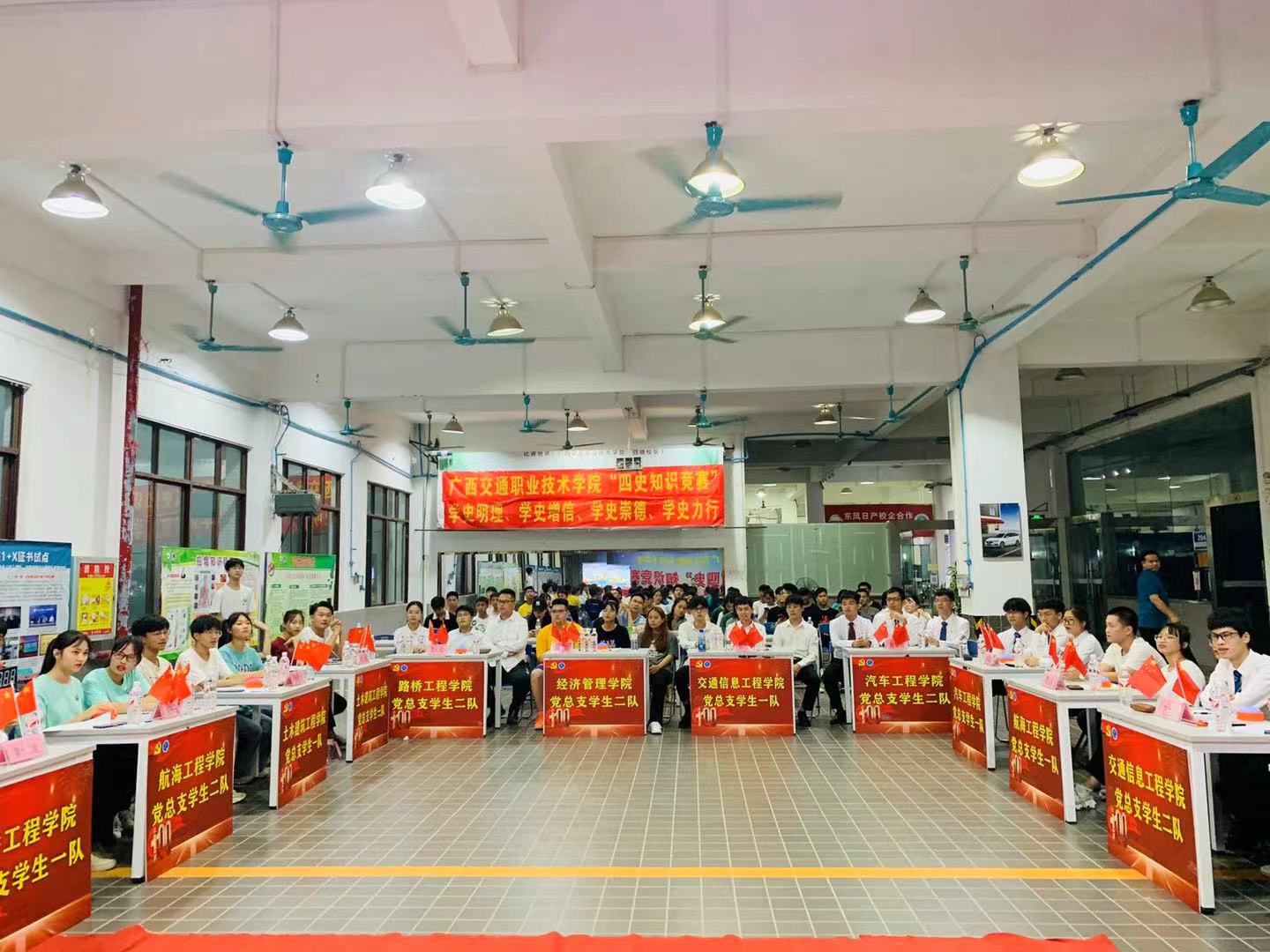 (经济管理学院 讯 韦珍妮/文 甘青梅/图)6月1日,由学校党委主办,汽车工程学院党总支和土木建筑工程学院党总支共同承办的广西交通职业技术学院“四史”知识竞赛教工组、学生组比赛在汽车楼二楼举办。经过比赛激烈的角逐,由学院甘青梅、梁文、赵阳木三位党员老师组成的教工代表队在比赛中荣获三等奖;由韦乐、周善强、毛林三位同学组成的学生代表队在比赛中荣获一等奖(第一名)。